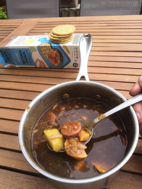 Family Recipe We Call Hobo Stew Homemade Food from i.redd.it Put cover on tight and boil until you can smell the veggies, (usually about 15 minutes). How to make hobo stew by wolfpack survival.in this video i will be showing you how to make hobo stew. Place over coals and cook 2 hours or until fork can be inserted into carrots without trouble. Hobo stew, polish sausage links ( i used half of a regular smoked sausage package.), italian style meatballs, frozen corn, frozen grilled onions and mushrooms ( i used a small onion,chopped), red potatoes ,cut into bite sized pieces ( i used 3 small russet potatoes diced), baby carrots, bbq sauce ( i used honey bbq), i served it with cornbread. In a skillet over medium heat, brown meatballs on all sides; Cook and stir until softened, about 4 minutes. Form into four patties and set aside. This is an easy camping recipe for camper hobo stew.