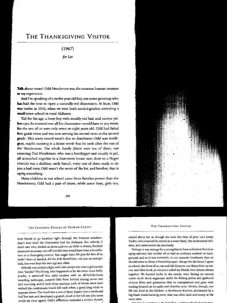 The thanksgiving visitor is a short story by truman capote originally published in the november 1967 issue of mccall's magazine, and later published as a book by random house, inc. By beth peck , truman capote. The home where truman lived in monroeville as a child. American author, screenwriter, and playwright truman capote would have turned 90 today, but the responsible for such works as breakfast at tiffany's and in cold blood, capote left behind a large. 'the thanksgiving visitor,' part 1.